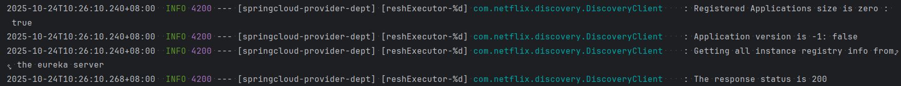 2025-10-23T23:17:37.046+08:00 INFO 23780 --- [ restartedMain] c.n.e.registry.AbstractInstanceRegistry : Finished initializing remote region registries. All known remote regions: []