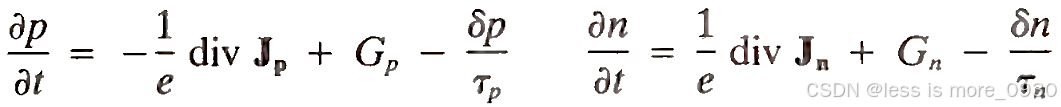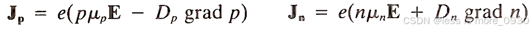 描述半导体中电子和空穴在光照下的通量的基本方程是电流密度方程(载流子浓度为标量,求梯度(grad)后为矢量: