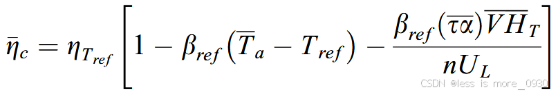 其中,上划线为月平均量,n为每天小时数,UL为总热损失系数,HT 为阵列平面上的月平均日照量,V 为日落角度、月平均清晰度指数、阵列月总辐射与水平表面辐射之比等量的无量纲函数。