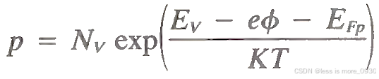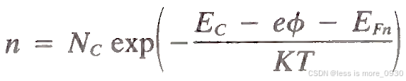 其中电势f与局部电场的关系式为E = -gradf。Nc和Nv分别为导带和价带的态密度(能量介于E~E+∆E之间的量子态数目∆Z与能量差∆E之比),EFn和EFp分别为电子和空穴的准费米能,n和p分别为它们的浓度,e为(正)电子电荷。