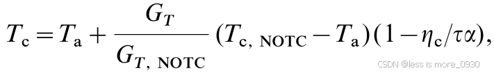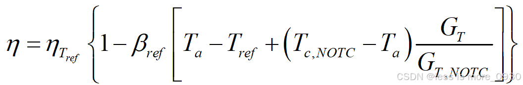 在许多相关的电效率表达式中,由于电池/模块温度不易获得,故用标称工作电池温度TNOCT进行取代。