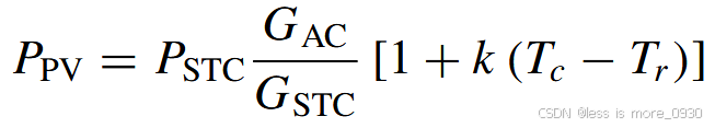 根据光伏组件在现场的输出功率预测其性能,即与组件制造商报告的标准测试条件的偏差,以类似于上述的方式建模。光伏电池/组件输出功率的表达式为: