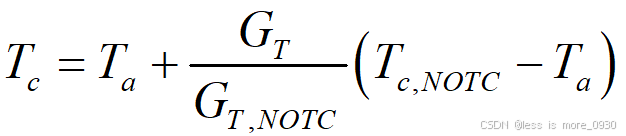 式中,Tc为电池工作温度;Ta为环境温度;GT为组件平面上的太阳辐照度;GT,NOTC为额定工作温度下组件平面上的太阳辐照度;Tc,NOTC为额定工作温度;t为电池盖透光率;a为电池对透射太阳辐射的吸收。