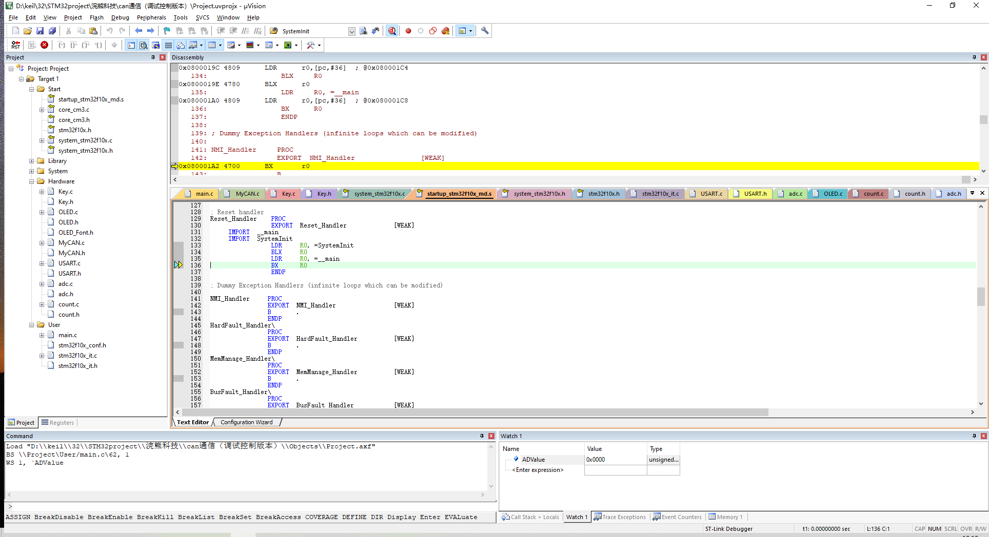 程序运行到这卡死在这了,这个是在SystemInit之后,准备进入main函数的时候。