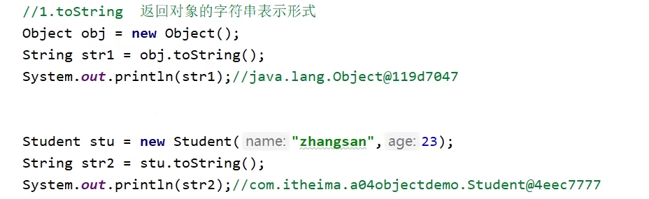 3、tostring是返回一个对象的地址值,system.out.println()底层代码用到了tostring,所以打印的是地址值