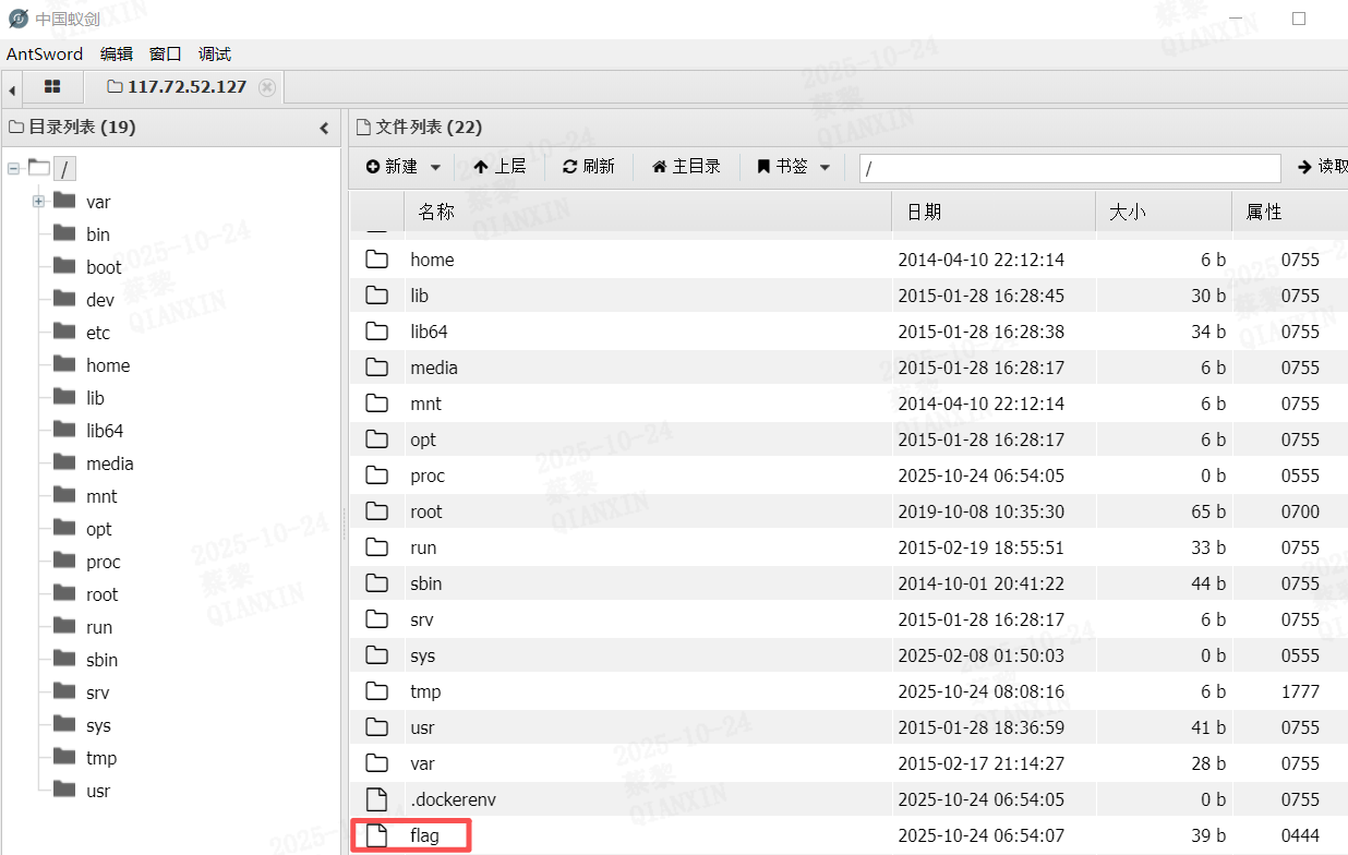 6.连接成功,之后文件列表中的根目录找到flag文件