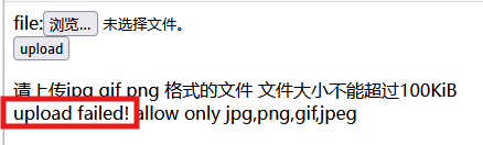 1.测试其他类型的文件是否能上传,测试了txt和php后缀的,结果都显示upload failed。