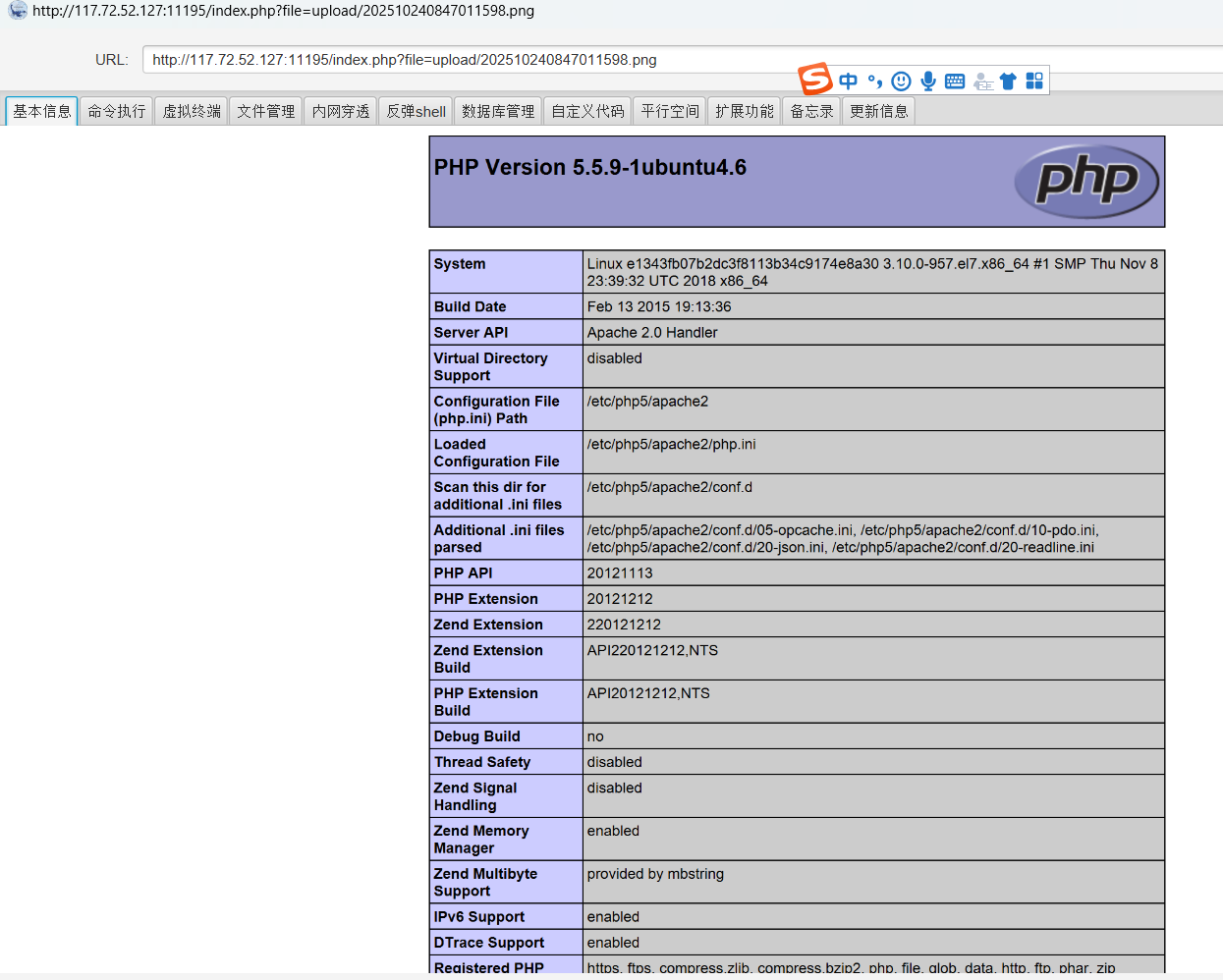 1.尝试上传文件内容为:<script language=php>system("ls")</script>的文件,将文件后缀从txt改为png。