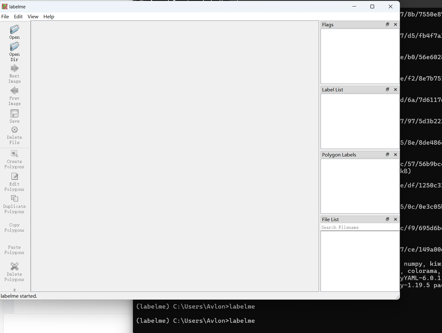 弹出labeme窗口,说明安装成功。接下来可以查看或者制作语义分割标签。