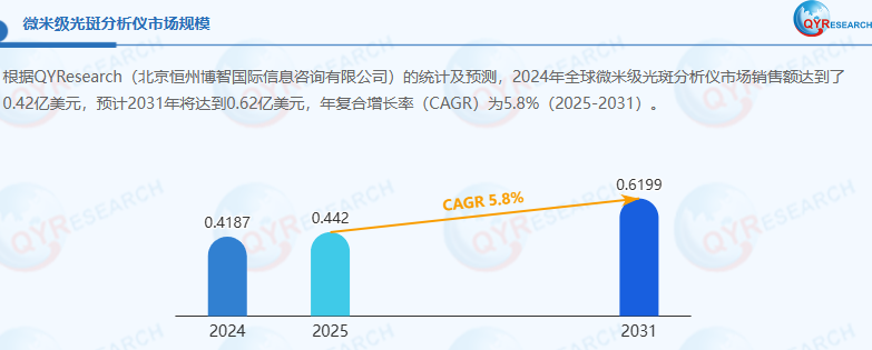 根据QYResearch的统计及预测,2024年全球微米级光斑分析仪市场销售额达到了0.42亿美元,预计2031年将达到0.62亿美元,年复合增长率(CAGR)为5.8%(2025-2031)。2024 年,中国微米级光斑分析仪市场规模已达到 1.2 亿美元,同比增长率高达 15%,这一增速远超普通光学仪器行业平均水平。驱动增长的核心动力来自两方面:下游应用领域的刚性需求与国家政策的强力扶持。