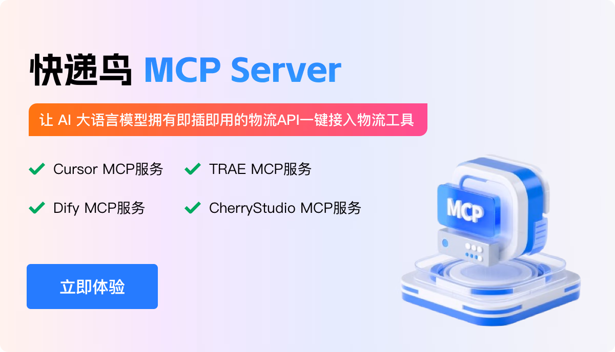 限时福利:现在注册体验,即可获取《快递鸟MCP Server接入指南》及专业技术支持。