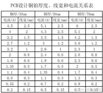PCB设计铜铂厚度、线宽和电流关系表