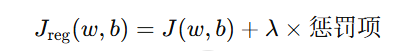 于是我们在原有的代价函数后面加上一个“惩罚项”,限制参数不能太大: