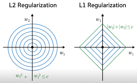 相比之下,L2 的约束是一个圆形,没有“尖角”,所以参数只会变小,不会直接为 0。