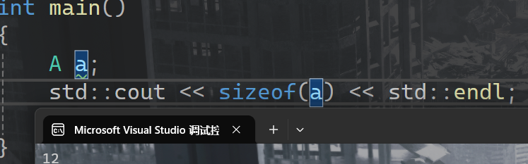 所以a对象的大小打印出来是12字节(4Byte的指针,1Byte的_a,填充3字节,4Byte的_b)。