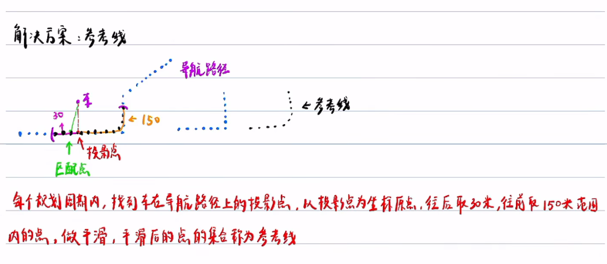 匹配点是距离最近的真实的路径散点,投影点是假想的点