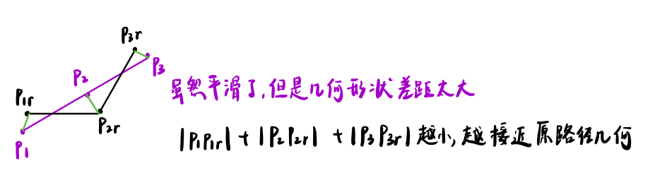 (2)有时平滑了,但几何上差距过大,我们要求的是与原路径点相似: