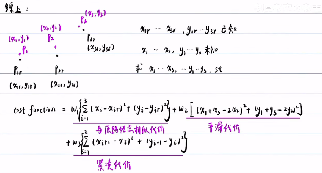 其中 w_smooth, w_length, w_curvature 是权重系数,用于调整各项的重要性。