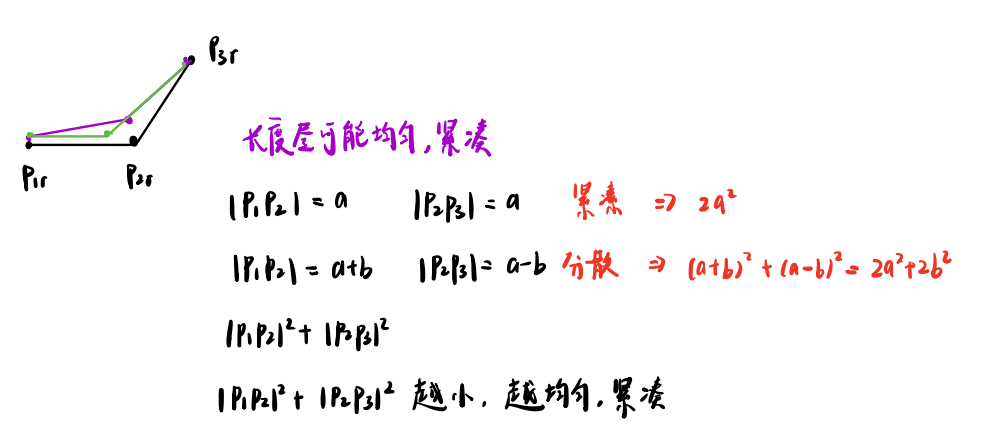 - 曲率的计算比较复杂,通常用相邻线段夹角的近似值来代替。