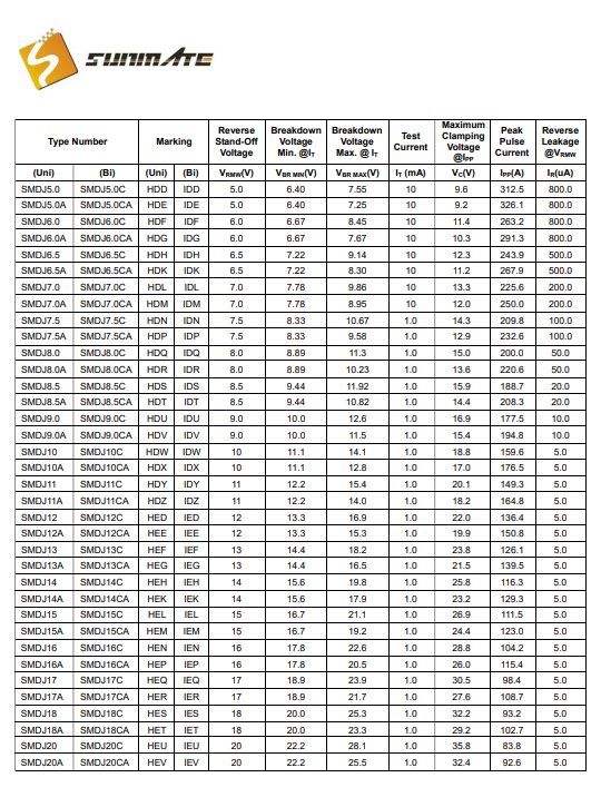 SMDJ15CA双向TVS瞬态抑制二极管:15V双向电压SMC封装