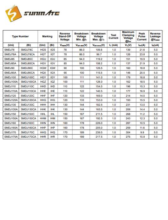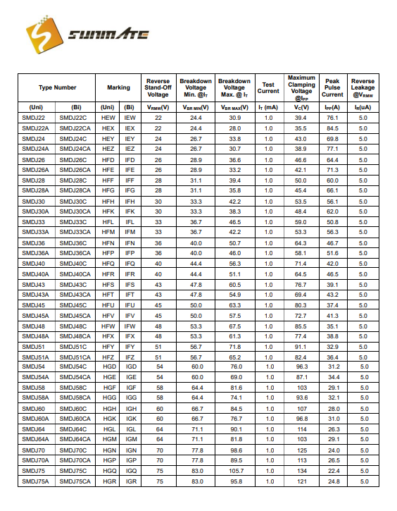 3000W峰值脉冲功率能力,a10/10004波,重复率(dutycycle):0.01%高温焊接保证:260*C/10秒