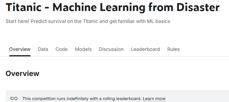 泰坦尼克号数据集分析作为入门比赛,在overview中的介绍十分详细(包括平台的使用、数据集介绍、遇到问题等),按照它的说明,进行操作就好。