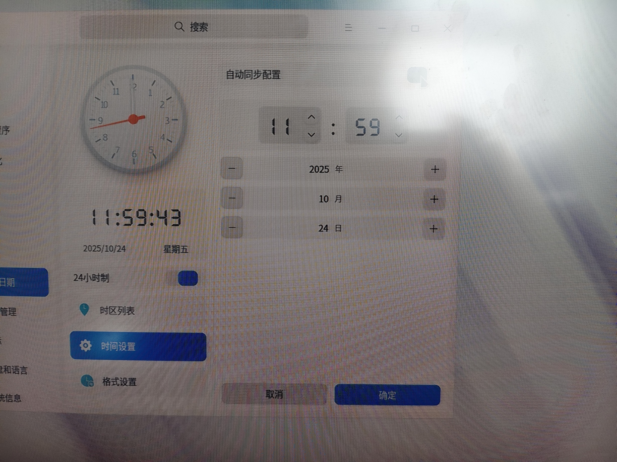 4、关闭自动同步配置,并设置当前正确时间,点击确定