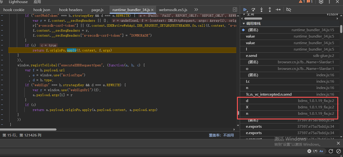 找执行bdms.JS的最开始地方,这里设置条件断点