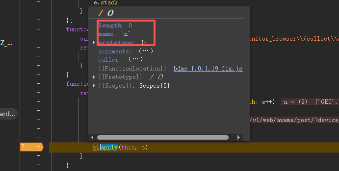 首先全扣代码 bdms.JS文件,补完环境后,导出n函数,因为n函数会有很多个接口经过然后对a_b值加密,所以要设置一个特有的条件断点。