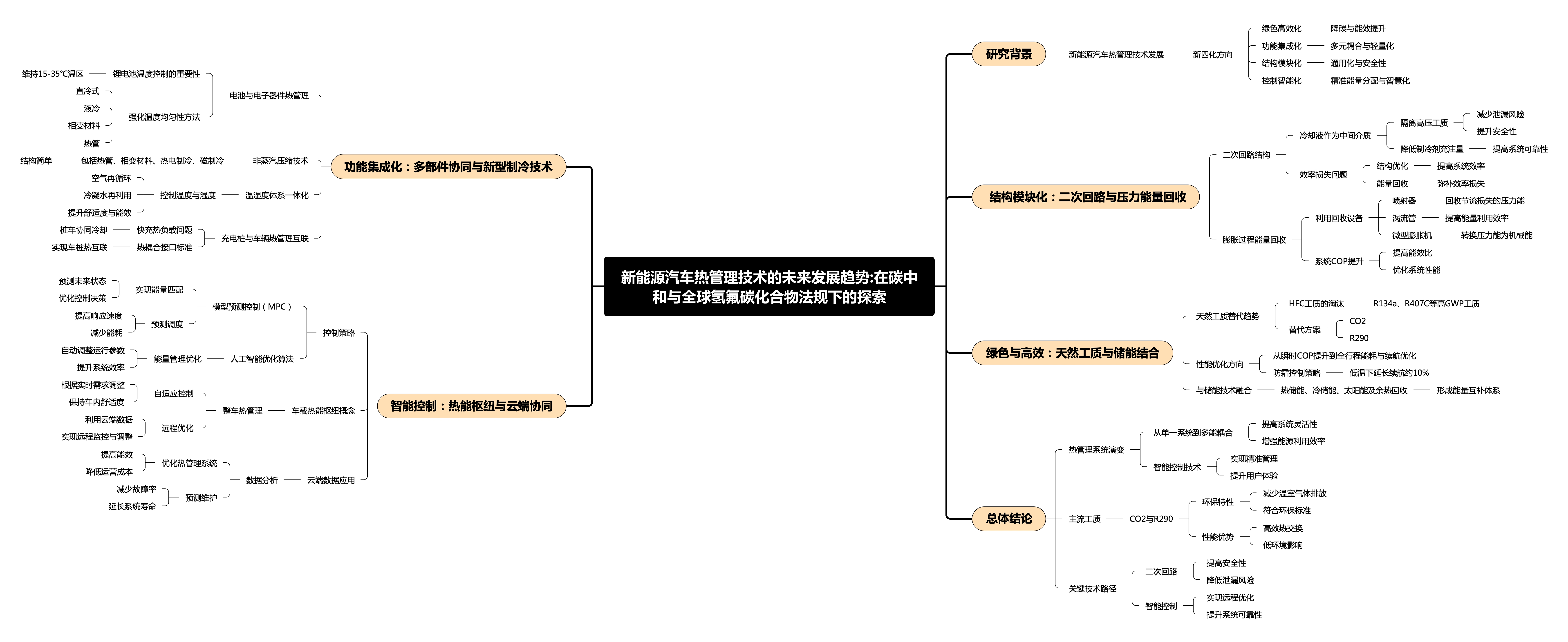 今天阅读了一篇新鲜出炉的文献——《Future development trends in new energy vehicle thermal management technology in the context of carbon neutrality and global hydrofluorocarbon regulations》。这篇论文发表于2025年10月,由西安交通大学的宋宇龙团队领衔,系统梳理了新能源汽车(NEV)热管理系统(TMS)的演进路径。面对全球碳中和目标和HFC制冷剂淘汰压力,TMS正朝着更绿色、智能的方向转型。