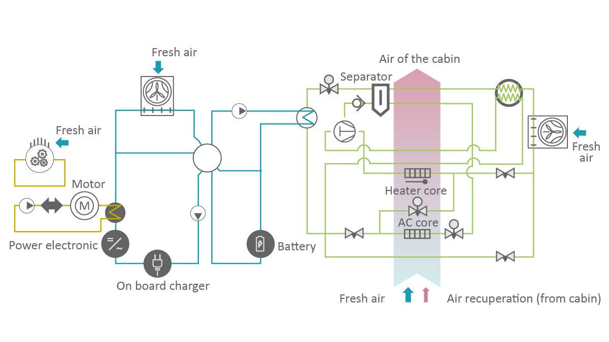 功能集成旨在将舱室、电池、电机和电子需求统一到一个热力循环中,实现轻量化和高效。