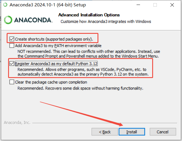 仅勾选图中的两个选项,然后点击Install开始安装软件