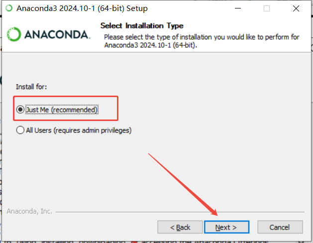 此处的Just Me选项保持默认不变,直接点击Next进入下一步