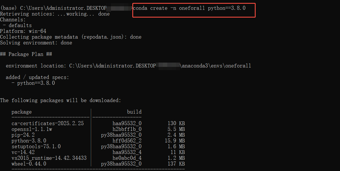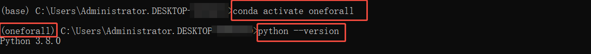 conda create -n oneforall python==3.8.0