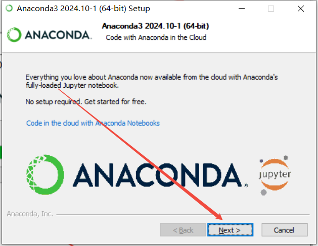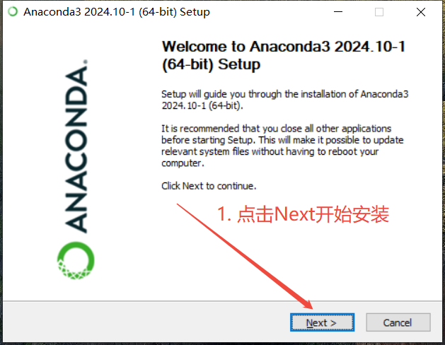 双击运行上一步中下载的安装包程序,开始安装Anaconda,如下图所示