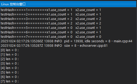 20251024 02:21:28.445325Z 15119 INFO size = 8 - echoserver.cpp:81