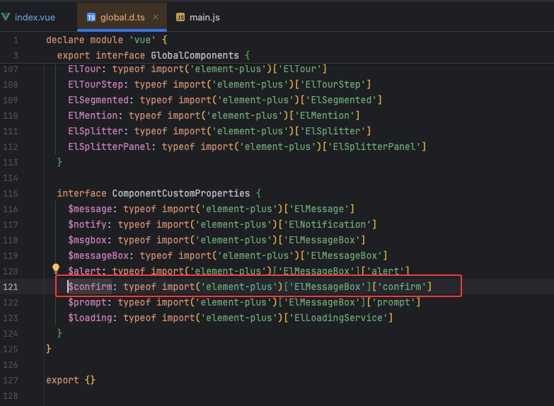 saveResetPwd() {// 重置成功后弹出 5 秒倒计时确认框:可点击“确定”立即退出或倒计时结束自动退出this.$refs.resetPwdForm.validate(valid => {if (!valid) return;this.resetPwd.username = this.userInfo.username;const { confirmPassword, ...requestParams } = this.resetPwd; // 去掉 confirmPasswordthis.$store.dispatch('ResetPassword', { requestParams, id: this.userInfo.id }).then(() => {this.showUserInfo = false;let seconds = 5;// 清理旧倒计时防止重复if (this._logoutTimer) {clearInterval(this._logoutTimer);this._logoutTimer = null;}const doLogout = () => {this.$store.dispatch('LogOut').then(() => {this.$router.push({ path: '/login' });});};const confirmPromise = this.$confirm(`密码修改成功,系统将在${seconds}s后自动退出,请您重新登录!`,'提示',{type: 'warning',showCancelButton: false,showClose: false,closeOnClickModal: false,closeOnPressEscape: false,confirmButtonText: `确定(${seconds}s)`});// 用户点击“确定”提前退出confirmPromise.then(() => {if (this._logoutTimer) {clearInterval(this._logoutTimer);this._logoutTimer = null;}doLogout();}).catch(() => {// 异常关闭兜底退出if (this._logoutTimer) {clearInterval(this._logoutTimer);this._logoutTimer = null;}doLogout();});// 倒计时:更新按钮文字与提示文本;结束时自动关闭弹窗并退出this._logoutTimer = setInterval(() => {seconds--;if (seconds <= 0) {clearInterval(this._logoutTimer);this._logoutTimer = null;try { ElMessageBox.close(); } catch (e) {}doLogout();} else {const btn = document.querySelector('.el-message-box__btns .el-button--primary');if (btn) btn.textContent = `确定(${seconds}s)`;const msgP = document.querySelector('.el-message-box__message p');if (msgP) msgP.textContent = `密码修改成功,系统将在${seconds}s后自动退出,请您重新登录!`;}}, 1000);});});}有人可能疑问为什么$confirm的弹窗,为什么要ElMessageBox.close();去关闭,因为this.$confirm只要不点击按钮它就只返回一个promise对象,根本拿不到实例的,this.$confirm不能直接控制关闭,而且this.$confirm源码里面调用的就是MessageBox(如下图)