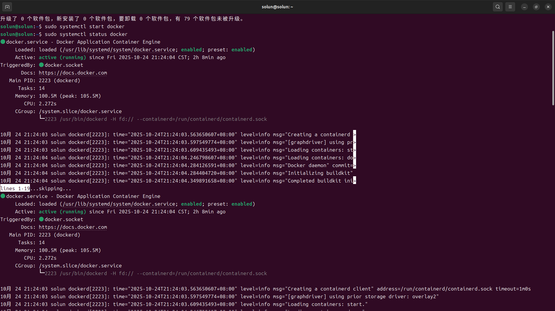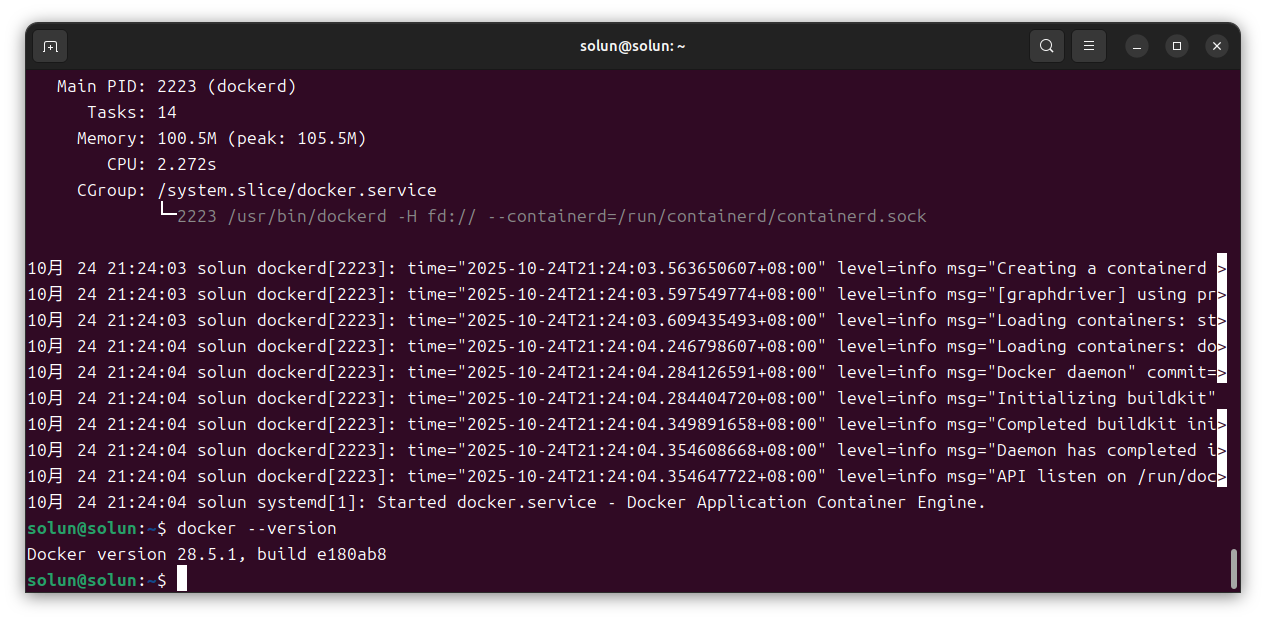 默认情况下,Docker 需要 sudo 权限来运行。如果你希望当前用户可以直接运行 Docker 命令,可以将当前用户添加到 docker 用户组: