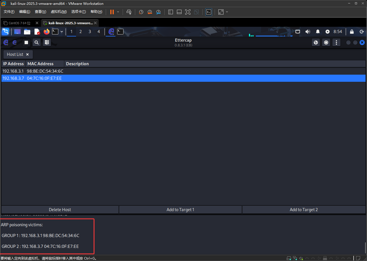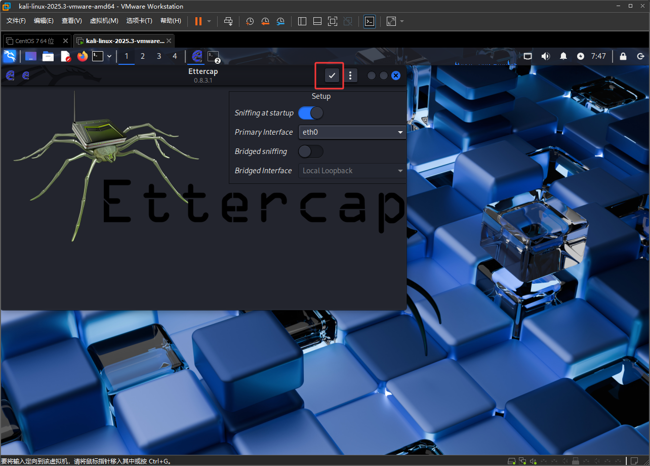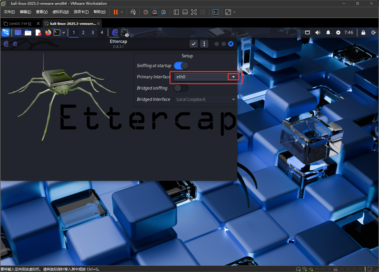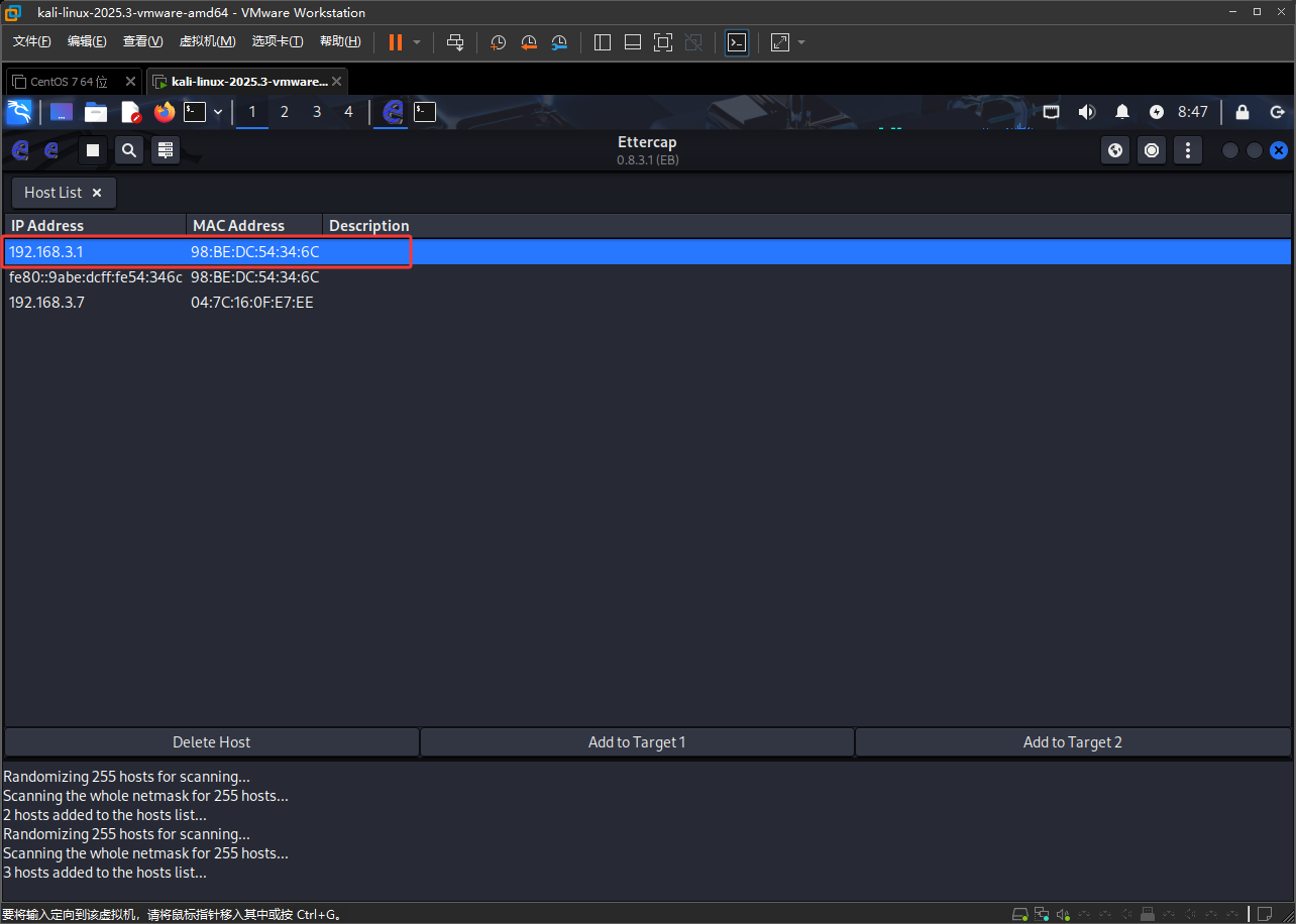 注意Kail如果是在虚拟机中的话,首先要设置成桥接并复制网卡