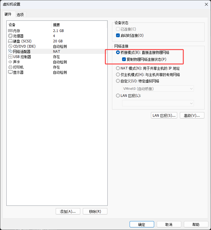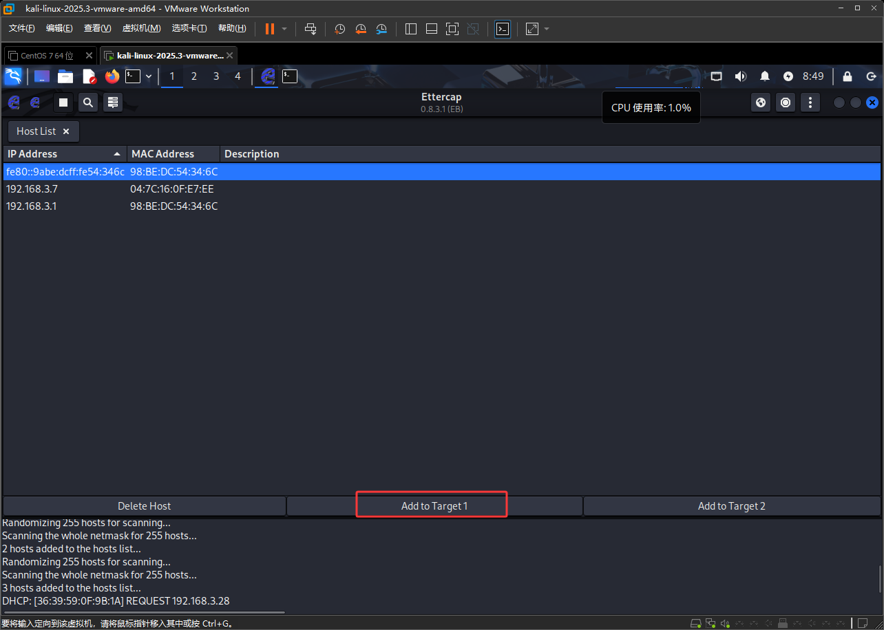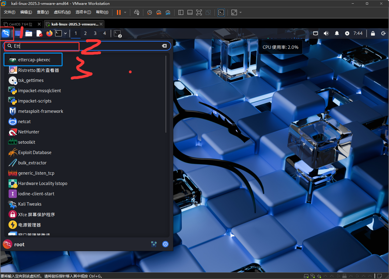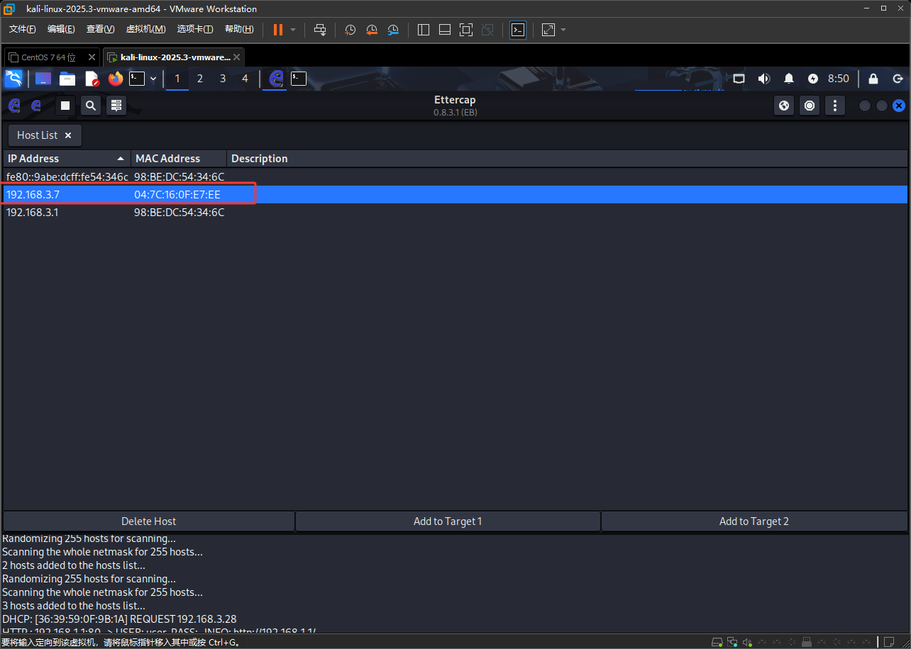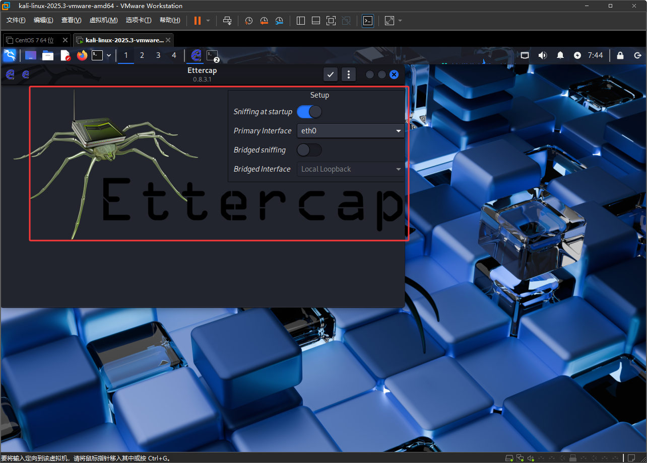 注意Kail如果是在虚拟机中的话,首先要设置成桥接并复制网卡