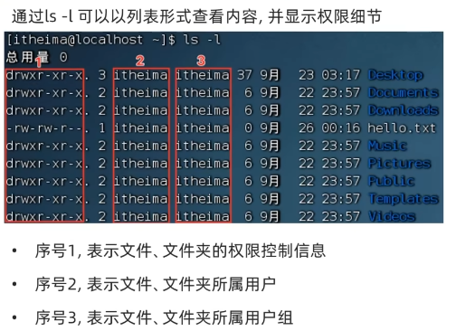 - chown root:itheima hello.txt,将hello.txt所属用户修改为root,用户组修改为itheima