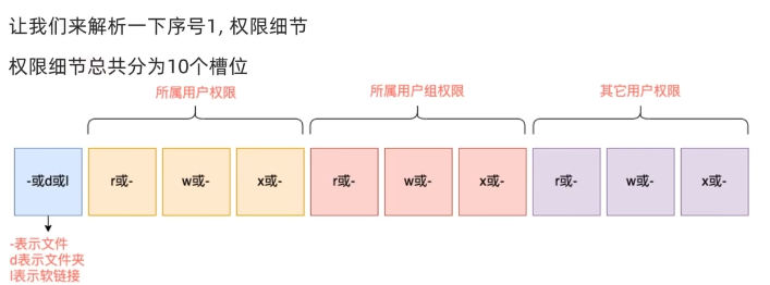 - 所属用户(上上一个图中序号2)的权限是:有 `r` 有 `w` 有 `x` , `rwx`