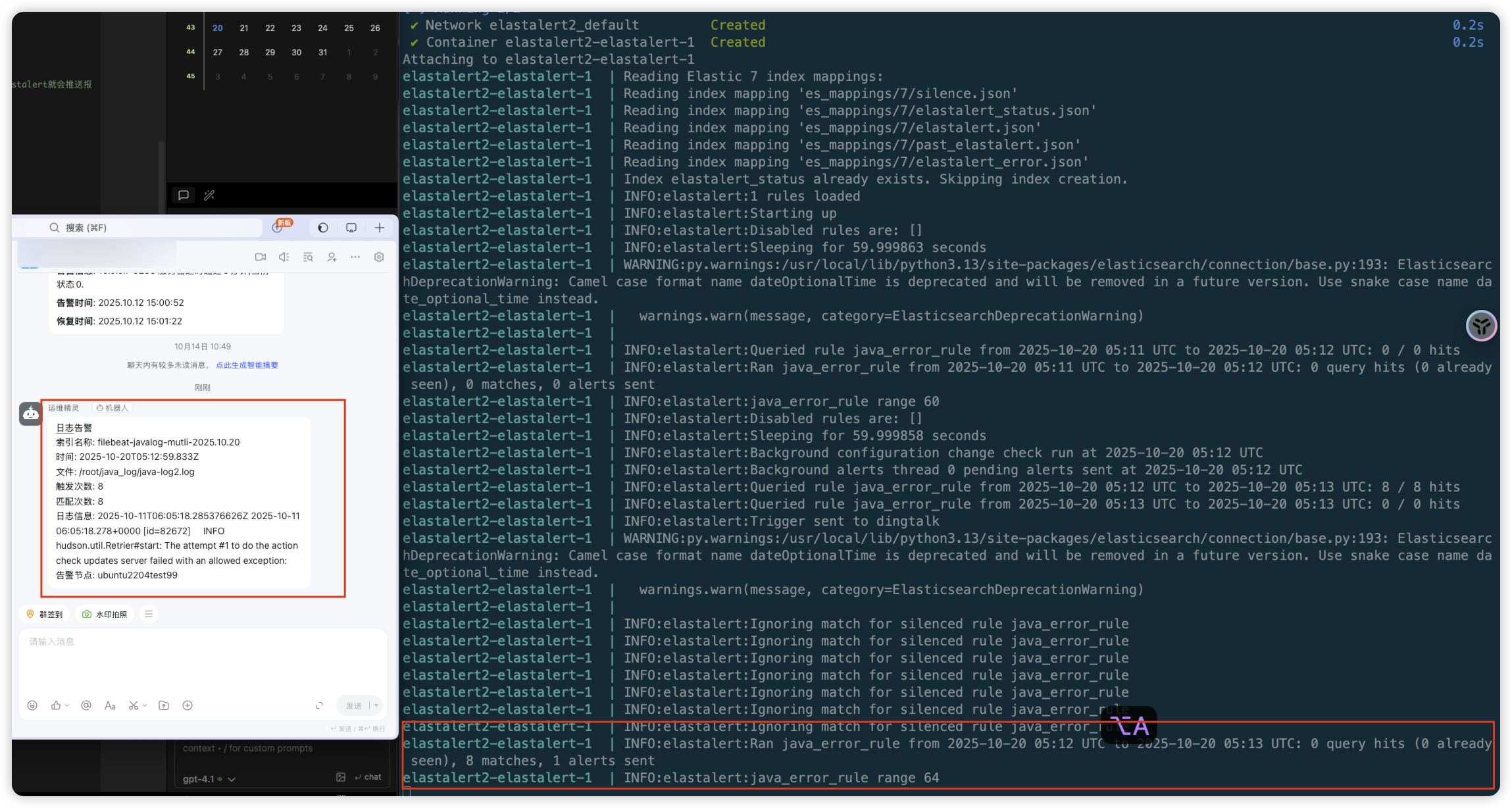 services:elastalert:#image: harbor.xxx.top/private-hub/elastalert2:latestimage: jertel/elastalert2:latestrestart: alwaysvolumes:- /root/Elastalert2/config.yaml:/opt/elastalert/config.yaml- /root/Elastalert2/rules:/opt/elastalert/rulescommand: --verbose