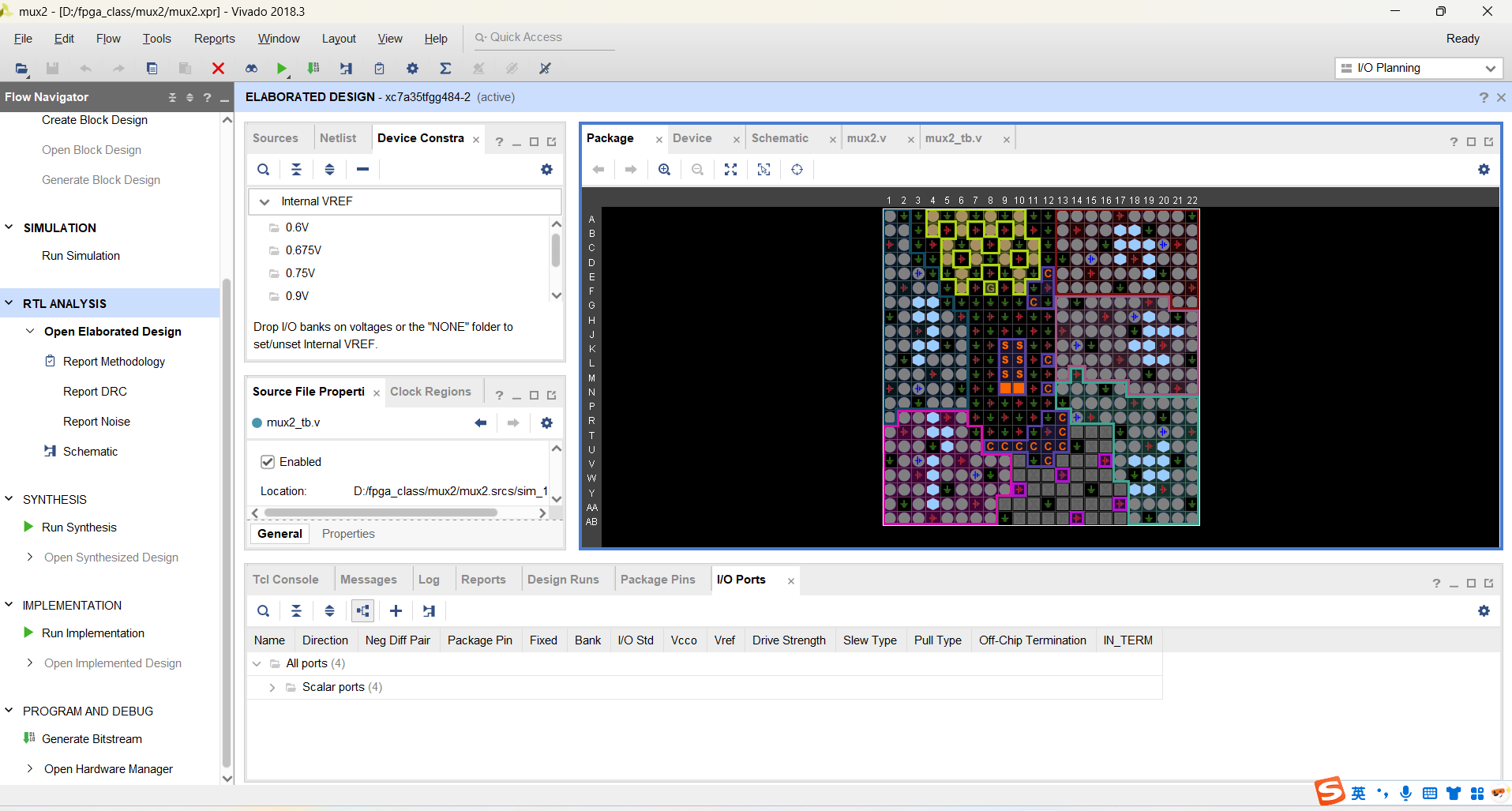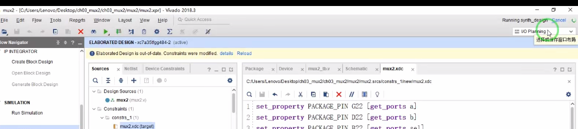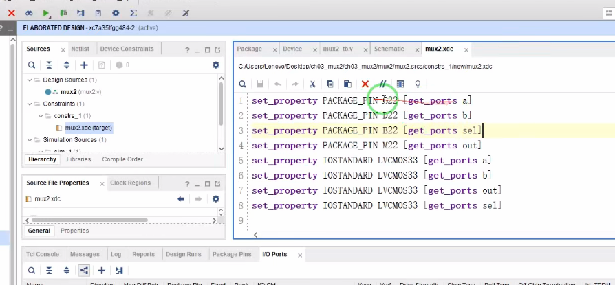 确定好物理硬件和端口的对应关系后,用vivado软件进行关联,称为管脚约束
