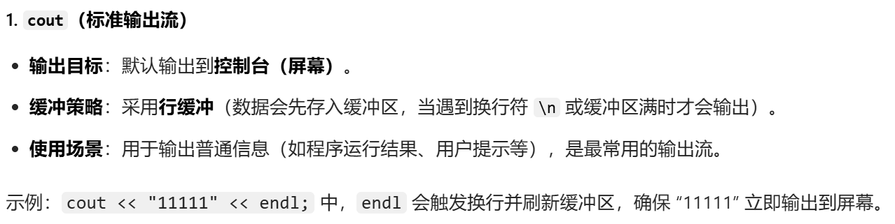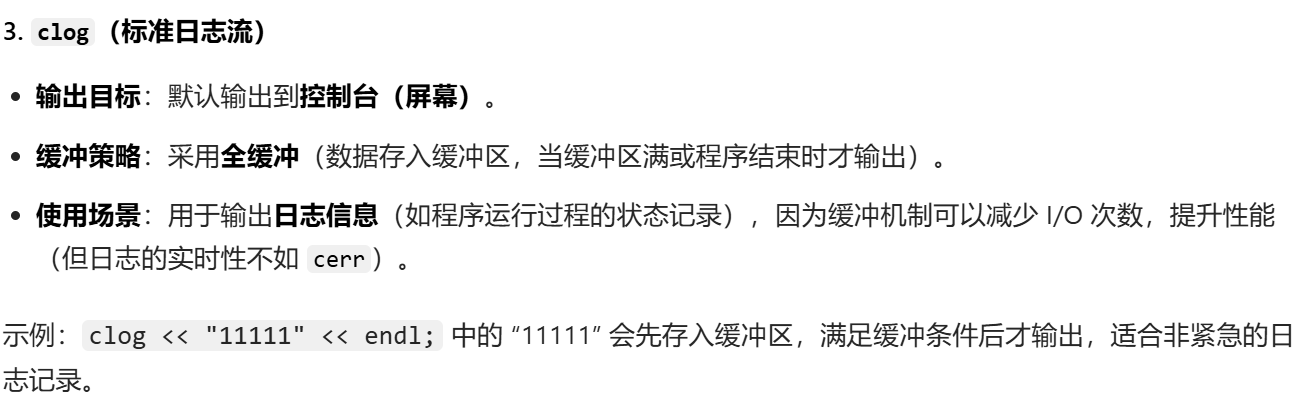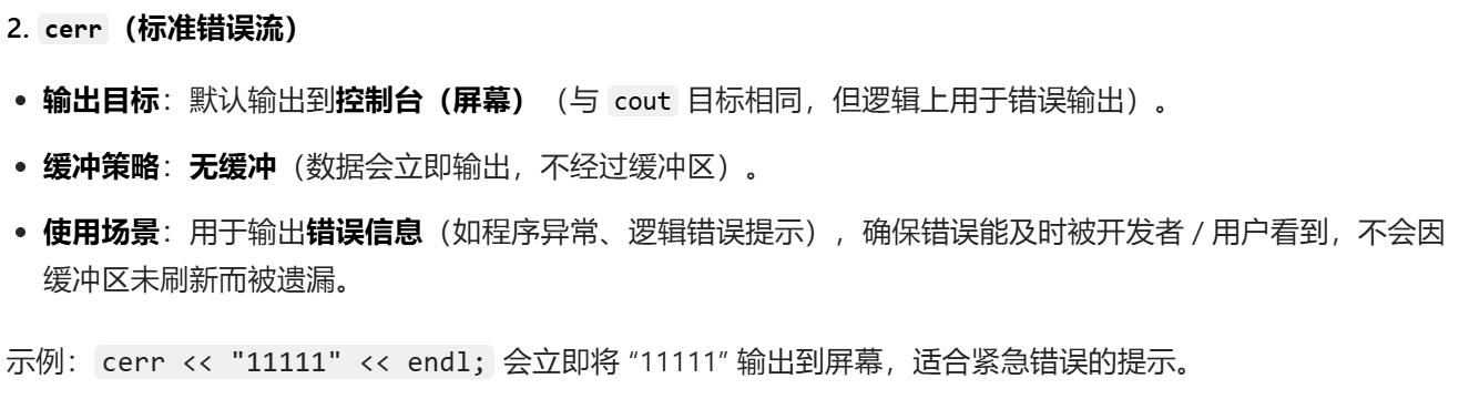 {cout << "11111" << endl;cerr << "11111" << endl;clog << "11111" << endl;string str;// istream& operator>> (istream& is, string& str);//while (cin >> str)while (operator>>(cin, str).operator bool()){cout << str << endl; }return 0;