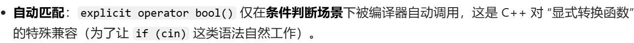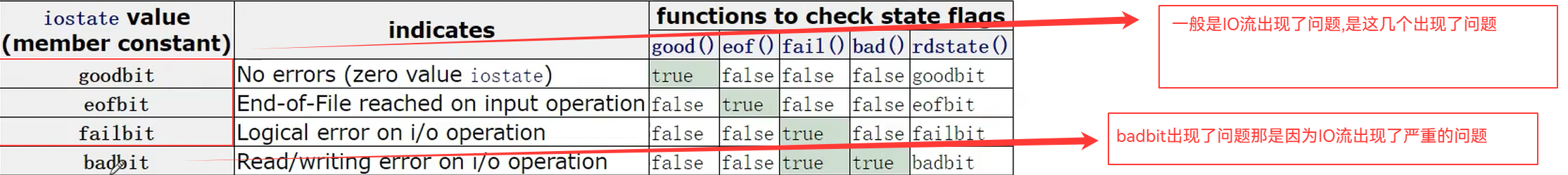 如果 failbit 或者 badbit 标志位被设置了,那么就会返回 false ,如果没被设置了,返回 true