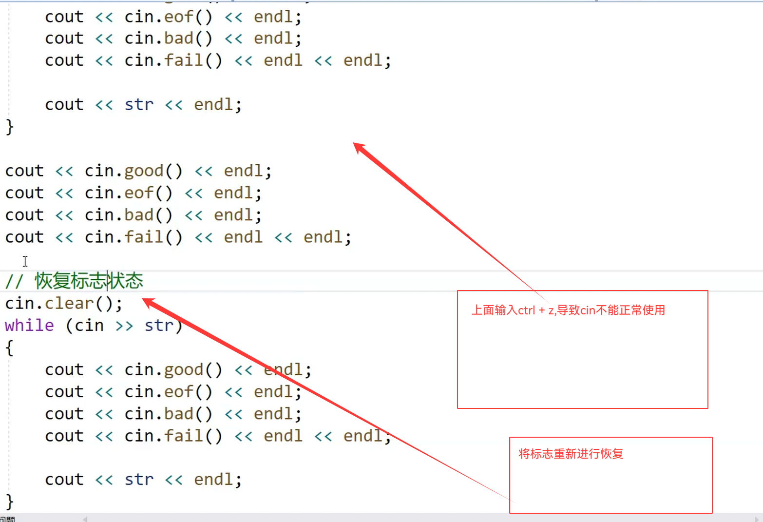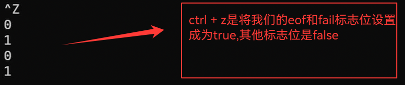 ctrl + z之后,我们的cin就不能继续使用了(cin要能使用,good被设置成为1,其他标志位设置成为0)
