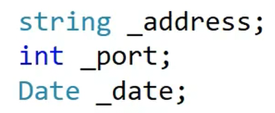 {string _name; // 名字int _id; // idDate _date; // 时间string _msg; // 聊天信息