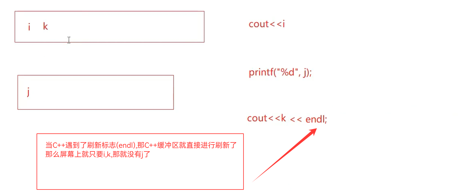 顺序就打乱了,那也就是说,C++每次入数据的时候,我们要将两个缓存区的数据全部刷出去