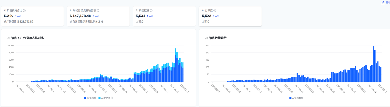 我跟DeepBI的工作人员说,希望能控制一下ACOS的增长。他们告诉我,增加探索流量,初期的花费是会稍微增加的,ACOS就会上涨。这是正常现象,后期探索出来优质流量种子之后就会趋于稳定,且AI优化系统会逐渐放大优质流量,保证在可控成本范围内提升销售额。